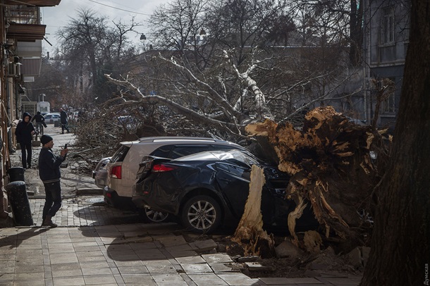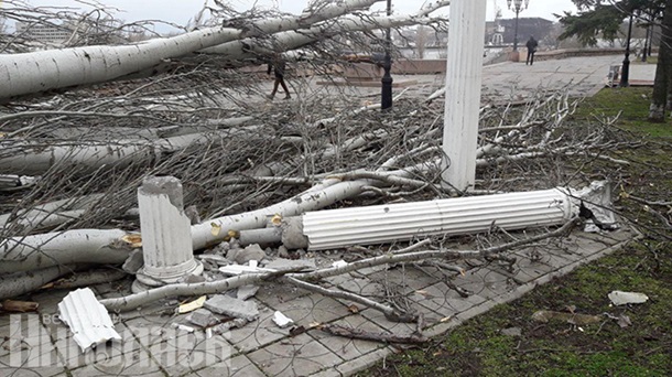 В сети появилось видео пылевой бури, которая накрыла Киевскую трассу в 50 километрах от Одессы. Движение по самому городу было осложнено не только упавшими деревьями, но и "гуляющими" мусорными контейнерами, которые "нарушают" ПДД и норовят устроить лобовое столкновение. Как пишет местное издание Думская, руководство города сегодня отсутствует на своих рабочих местах, несмотря на сложную погодную ситуацию. Так, сегодняшнее аппаратное совещание прошло без мэра Геннадия Труханова. Не было на рабочем месте и председателя Одесской облгосадминистрации Максима Куцого, который по информации СМИ, находится в Киеве. ![]() Поврежденная теплотрасса