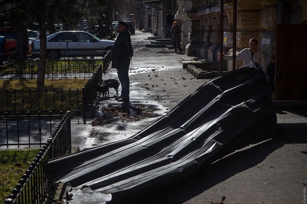 В Одессе порывы ветра также повредили теплотрассу, поэтому несколько домов остались без отопления. Шторм в городе и его окрестностях срывает крыши, фрагменты балконов и старинной лепнины. ↑ На видео предположительно реконструированный дом культуры Ананьева ![]() Ураган срывает крыши