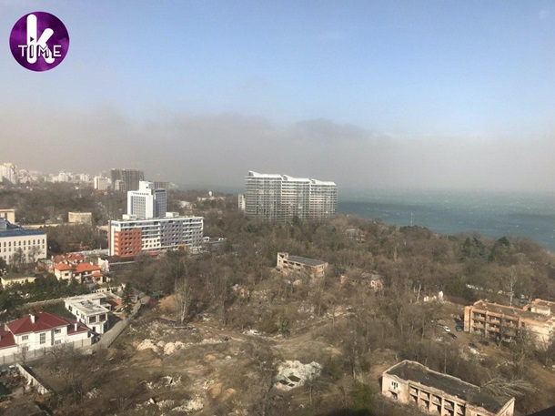 Воды Хаджибейского лимана залили Объездную дорогу. Машины медленно проезжают по трассе, потому что она почти полностью покрыта водой. Кроме того, движение замедляет и сильный ветер с водой, который дует со стороны моря. Из-за сильного ветра на Одессу пришла мощная песчаная буря. Видимость на дорогах сократилась до нескольких метров. ![]() Песчаная буря в Одессе