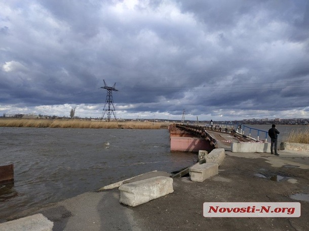 Жителей города просят не выходить на улицу без потребности. Уровень опасности - третий ("красный"). Также в Николаеве частично затопило понтонный мост на полуостров Аляуды. Причиной стал сильный ветер, из-за которого оборвался боковой трос, удержавающий часть конструкции. В настоящее время проезд по мосту закрыт.  |